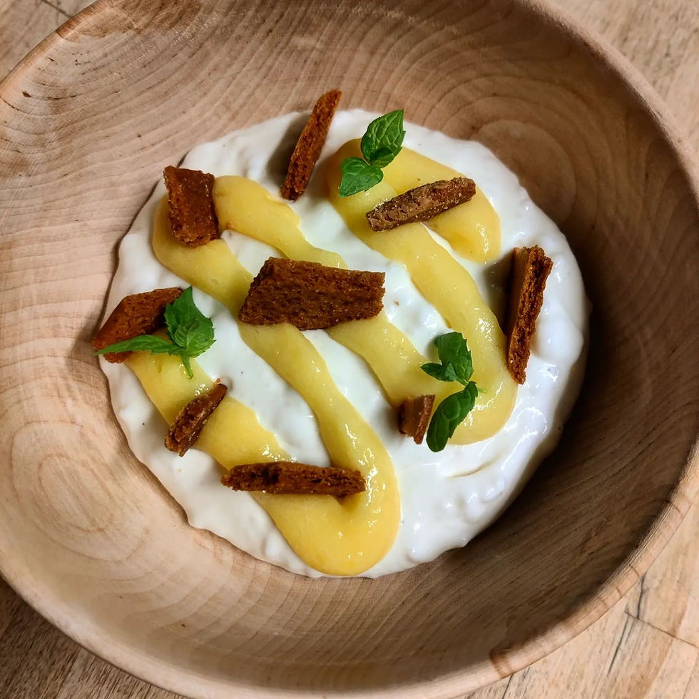De fleste av oss forbinder nok riskrem med "rød saus". Jeg synes vi med fordel kan leke litt med den! Server den gjerne med sitron "curd", søtt og syrlig er som kjent en digg kombo! Appelsinmarmelade er også et stalltips! Nå når vi går mot lysere tider og rabarbraen er like (litt ønsketenkning...) om hjørnet er det absolutt en god ide å srvere riskrem med rabarbrakompott! Strø gjerne over litt knust kjeks eller nøttekrokan! Megadigg!